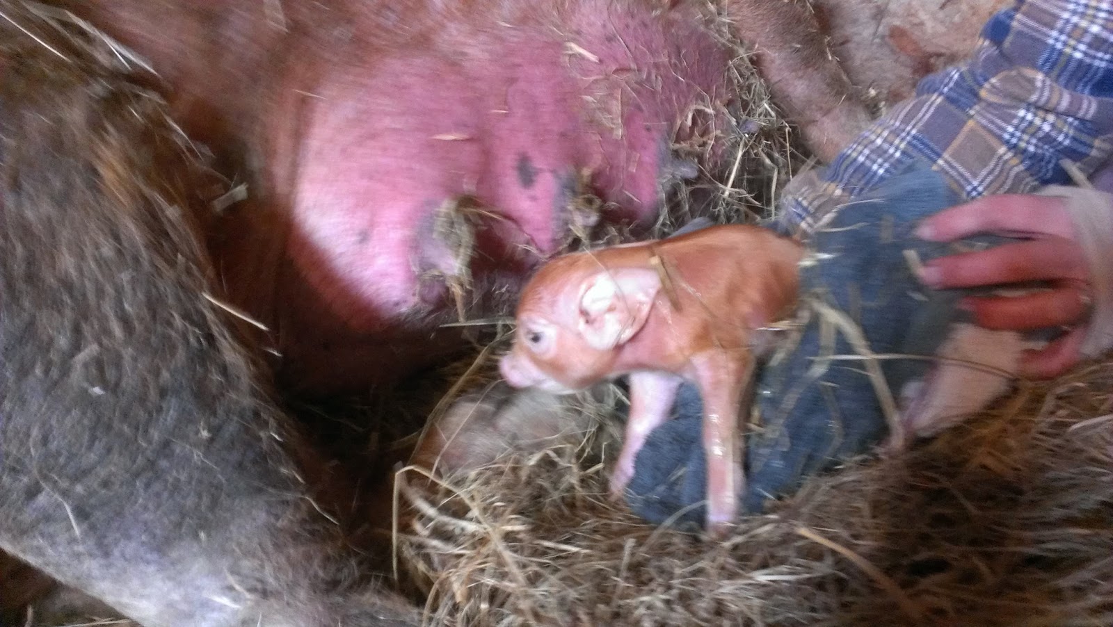 Oh. My. Goodness. Just like that, we had the first piglet.
